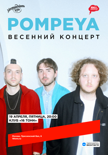 Pompeya возвращается в «16 Тонн», чтобы дать 19 апреля особенный весенний концерт на площадке, с которой группа начинала свой творческий путь!