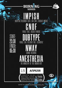 13 апреля, в субботу, на главном танцполе клуба «16 Тонн» на легендарной drum & bass вечеринке Burning Series от Occulti выступят артисты английских лейблов и резиденты.