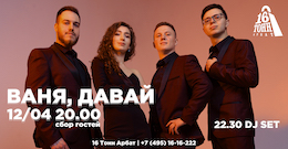 «Ваня, Давай!» — зажигательная кавер-группа из четырех молодых и энергичных артистов. Танцующий басист, поющий барабанщик и другие «смертельные» номера. Но об этом при встрече...