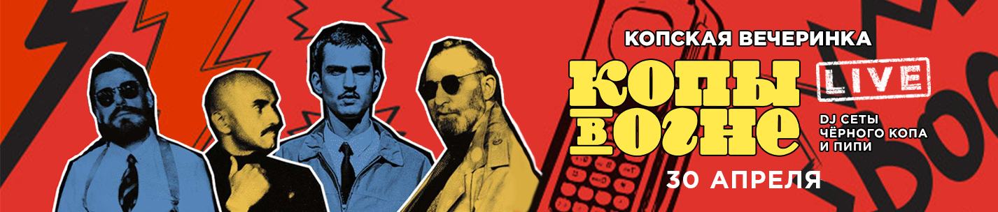 Копы в огне: Копская вечеринка Копы в Огне live + DJ сеты Чёрного Копа и Пипи Билеты от 1200 ₶