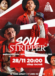 Кавер-группа Soul Stripper подарит слушателям настоящее, с хрипотцой, шоу, пропитанное духом рок-н-ролла. Выступление ребят заставит прыгать от восторга, а Nirvana, Linkin Park, AC/DC и хиты других групп не оставят выбора на танцполе.