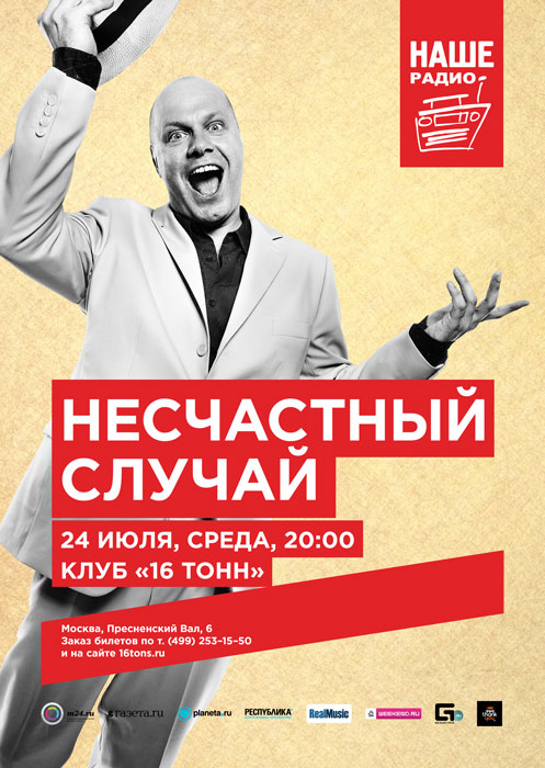 «Несчастному случаю» в этом году стукнет тридцать! И надо сказать, ему по-прежнему мало равных, как в производстве характерных стёбных песенок в жанре капустника, так и в создании отменных лирических произведений, вроде «Песни о Москве». Им всё так же по силам как народные хиты из разряда «Что Ты Имела Ввиду» или «Радио», так и берущие за душу каверы (см. «Генералы песчаных карьеров»), ну и, конечно, саундтреки (например, к спектаклям «День радио» и «День выборов»).