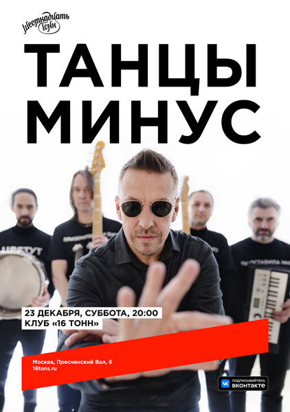 У гостей клуба «16 Тонн» есть уникальная возможность убедиться, что выступление «Танцев Минус» — трансцендентальный опыт, о котором останутся исключительно яркие воспоминания.